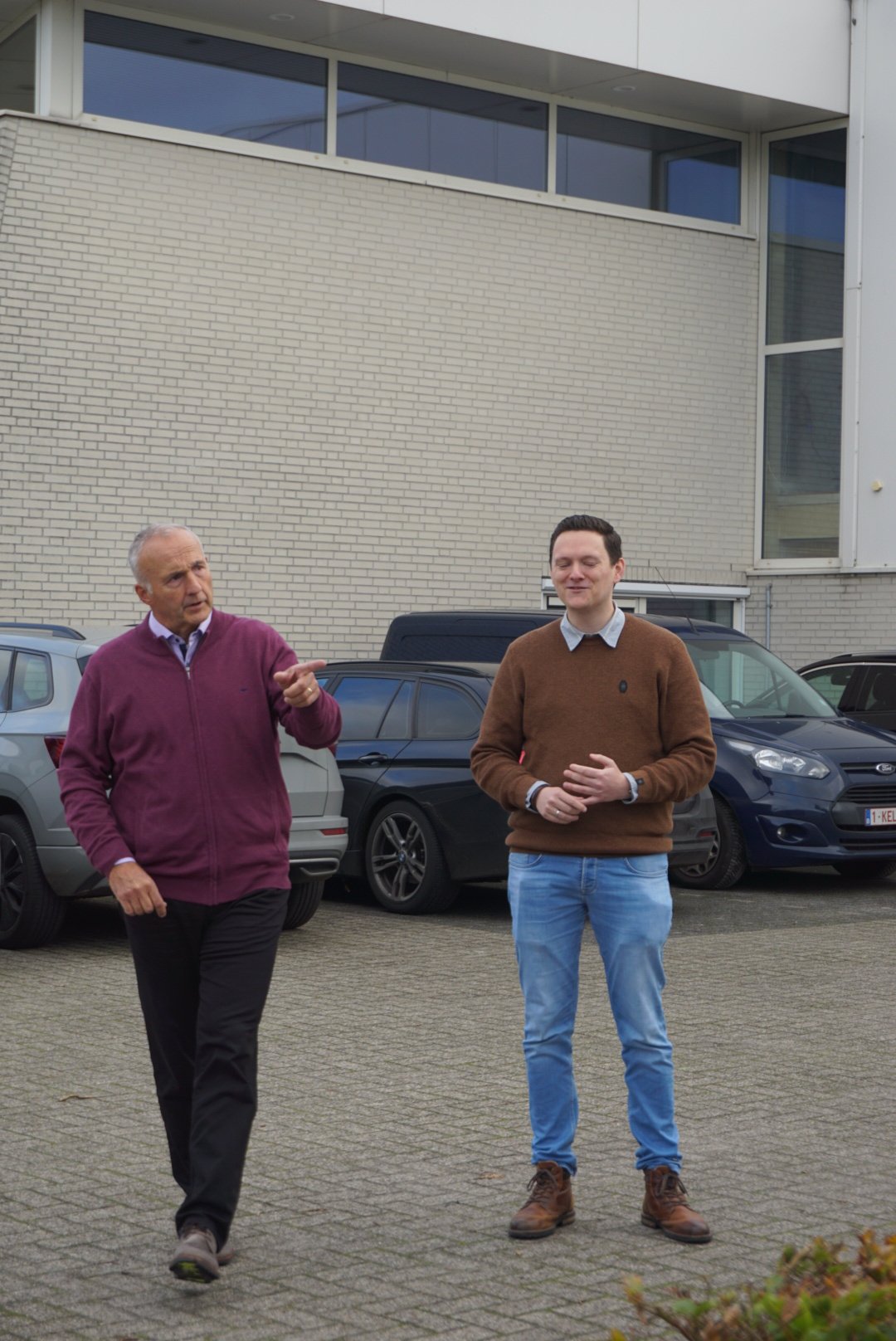 Mertijn Weeda, onderzoeker bij Avans Hogeschool, en Jan Rietdijk van het Kempisch Ondernemers Platform (KOP) bij een van de bedrijven die meedoen aan het Kempen Energy Hub project in Bergeijk.